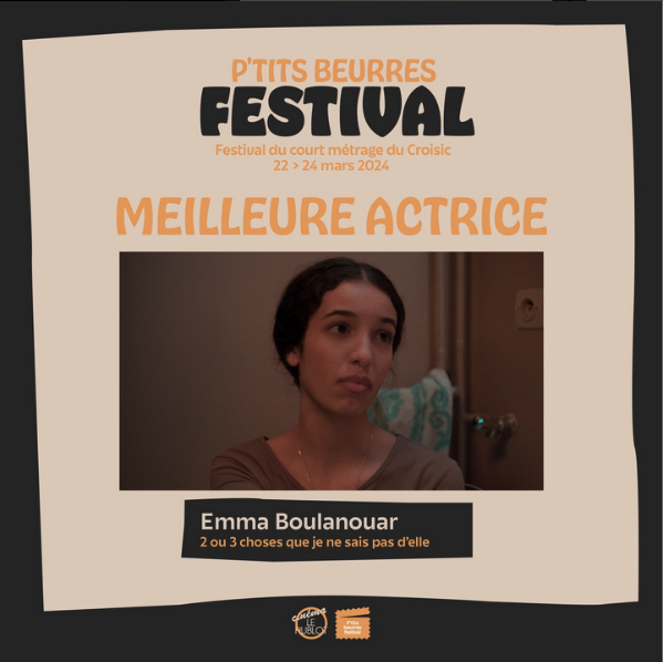 22 - 24 March, 2024 | Festival P'tits Beurre | Croisic, Loire Atlantique | France | Best Actress Award for Emma Boulanouar